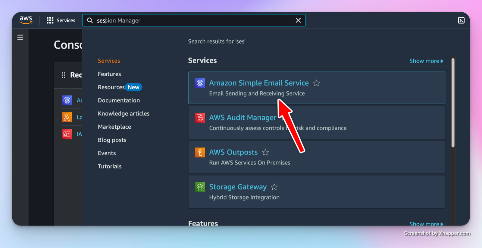 Then select the service you want to deploy - just type “ses” and it will display the service: