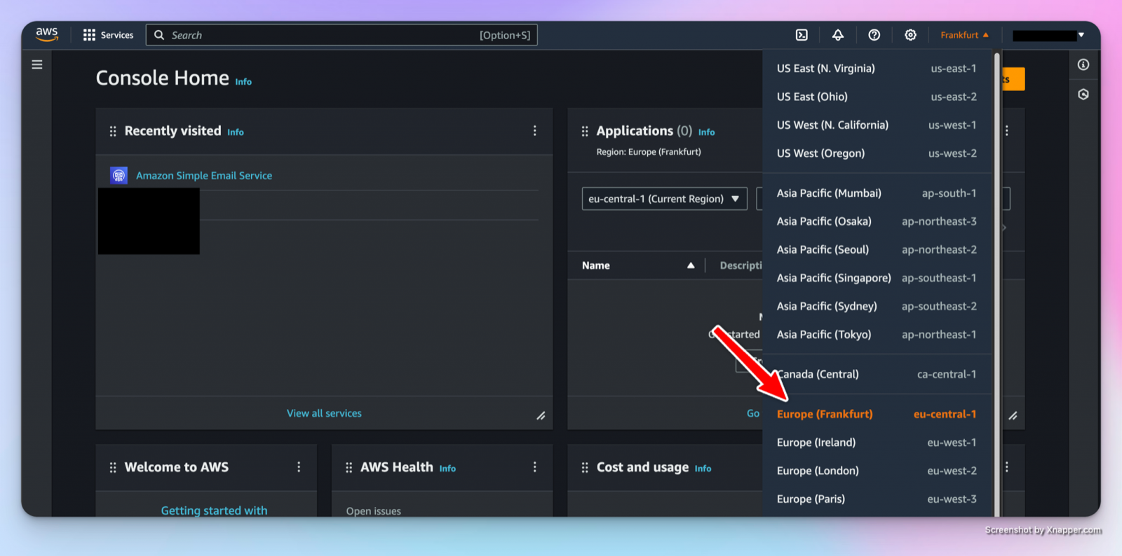 First select the region in which you want to deploy the service - in my case, I select Frankfurt am Main: