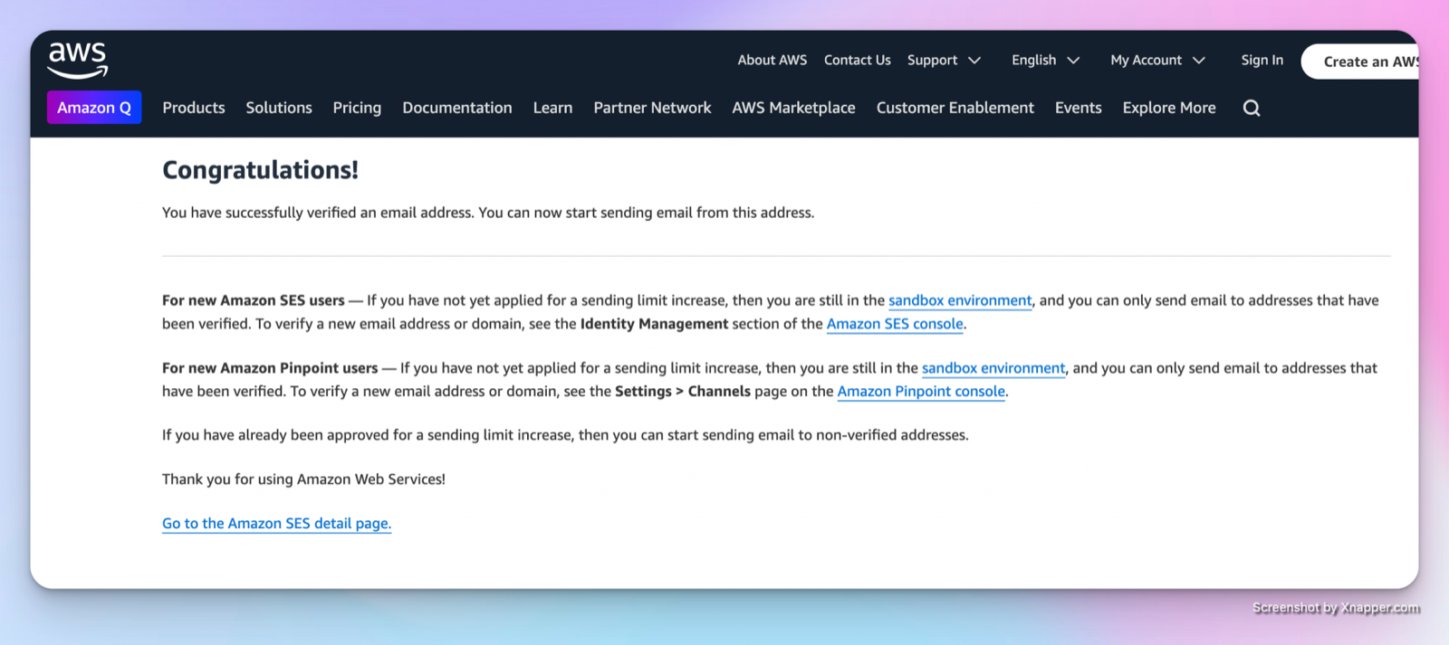 Setup Amazon Simple Email Service