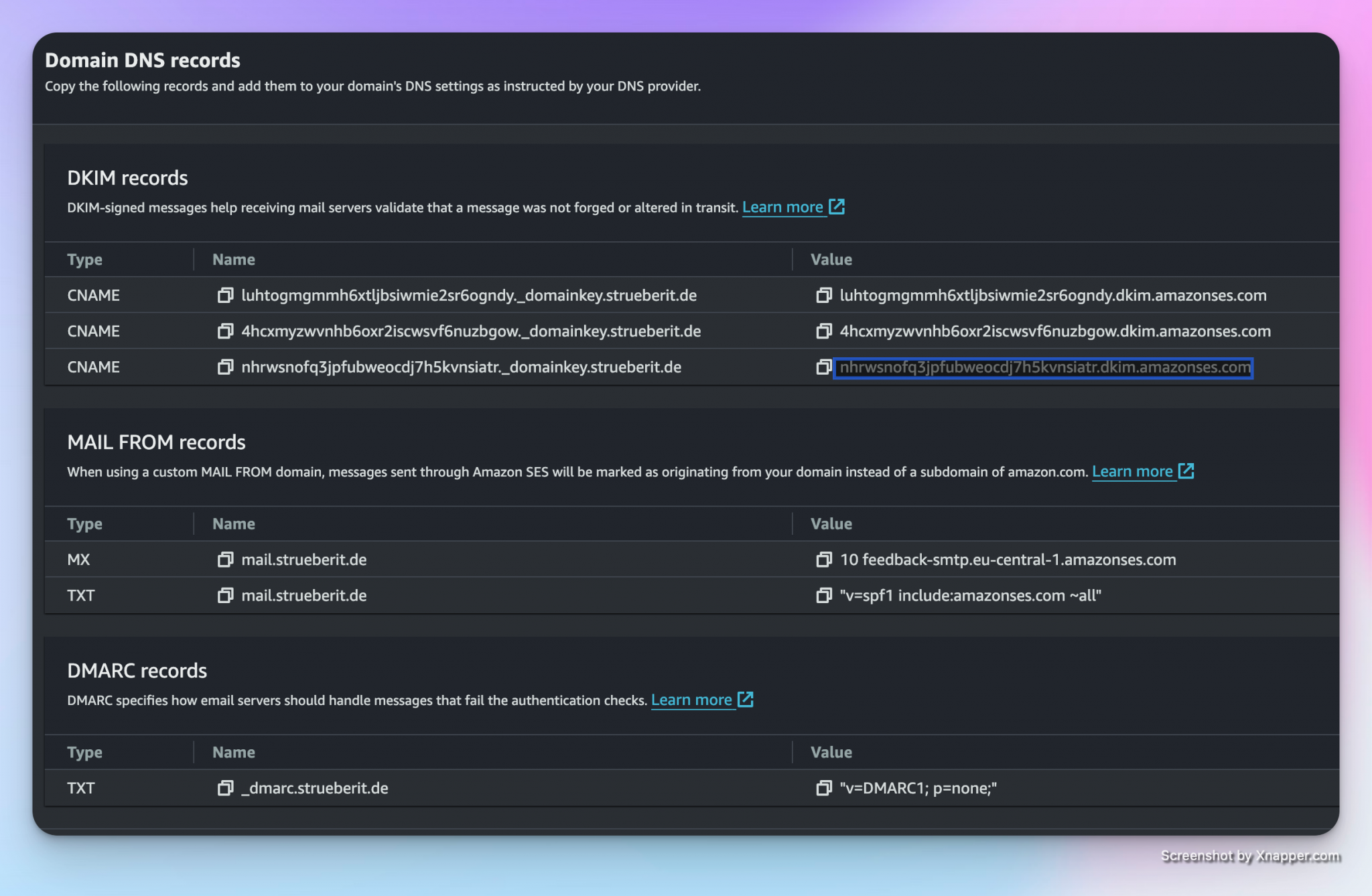 You will see a list of the required DNS records that you need to set up: