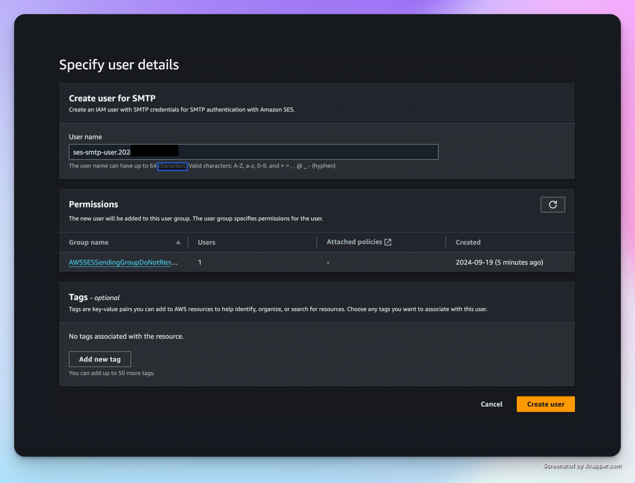 You will get a randomly generated username, which is fine for me, so just click “Create User”: