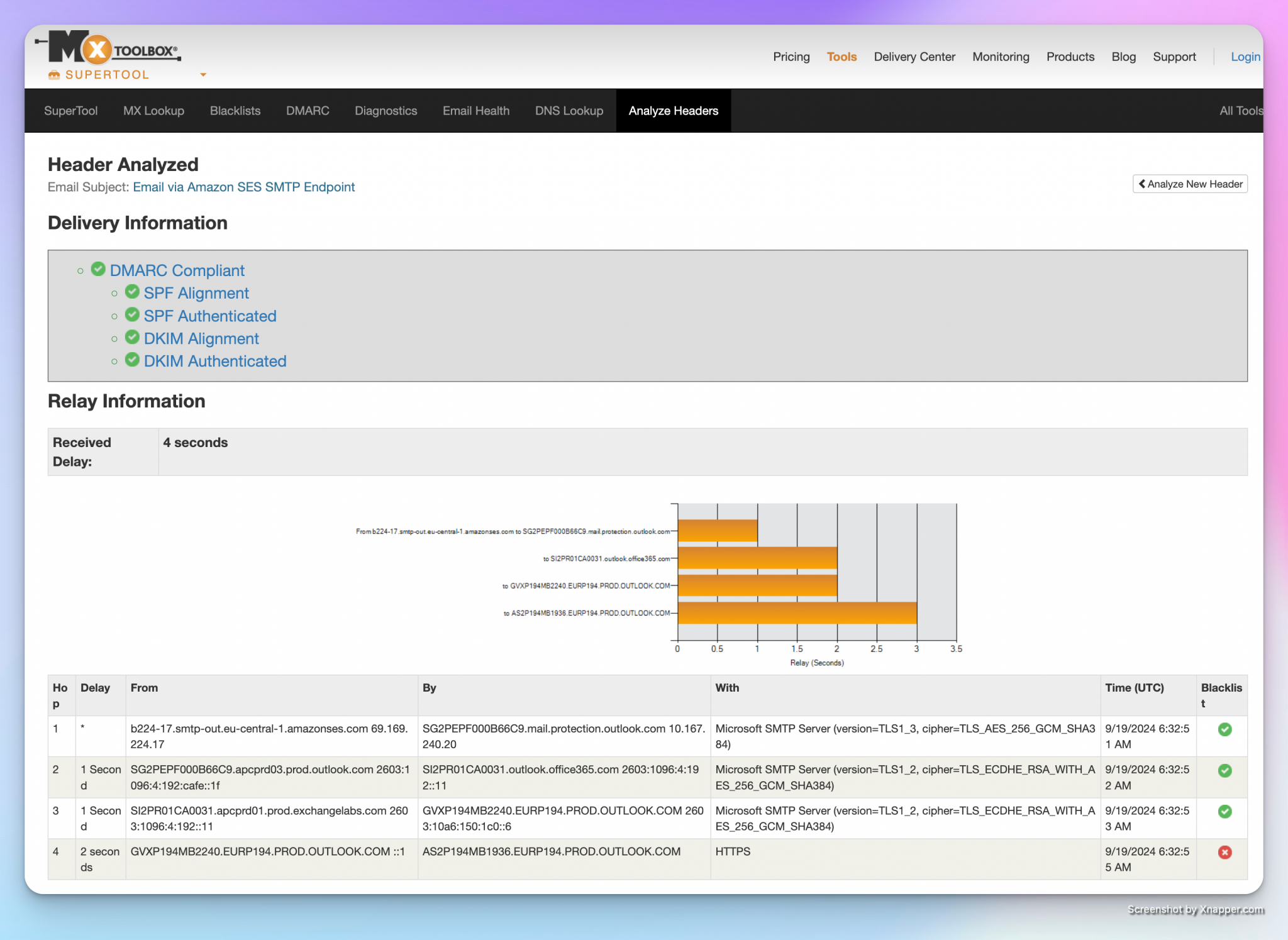 In my case, the email was successfully delivered and met all of my defined DMARC requirements: