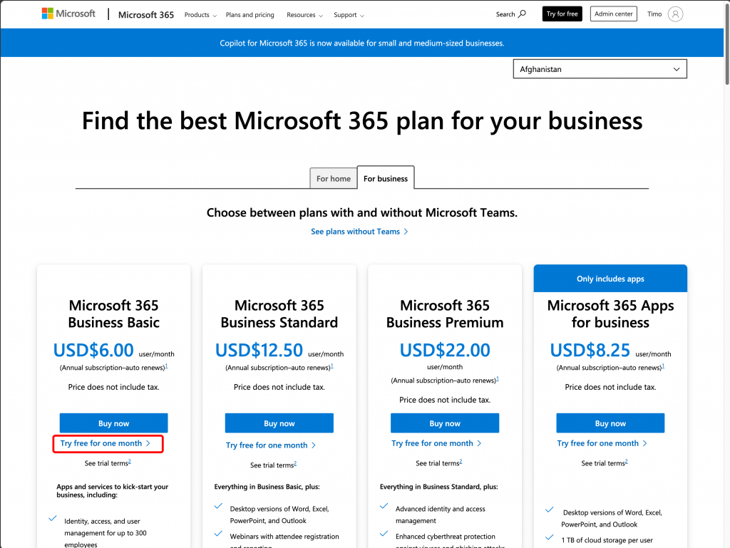 | [Compare Microsoft 365 Business Plans and Pricing | Microsoft 365](https://www.microsoft.com/en/microsoft-365/business/compare-all-microsoft-365-business-products?market=af) |