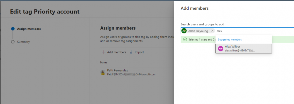 To add the tag to the members of a specific group, use the script provided in the last section of this article. This is necessary because changes may occur to your priority accounts and it is not possible to specify a group in the web interface.