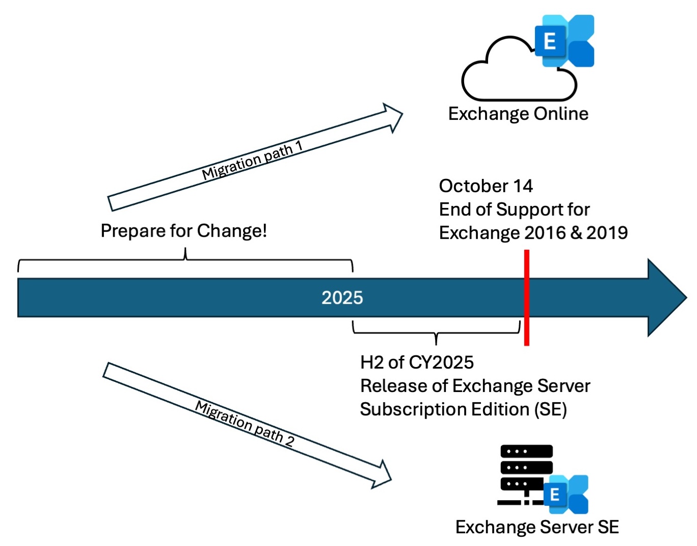 The current Exchange Server versions 2016 and 2019 will reach their end of support in 12 months from now, on October 14, 2025. That is still a year away, so there is plenty of time to prepare, but this should be on your list for 2025.