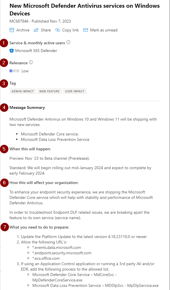 Checking for new messages is not a one-time task. It is crucial to develop and implement a regular process for checking messages. This approach prevents missing any significant changes that require technical preparation or communication to users in advance. Microsoft introduces several types of changes to their Microsoft 365 service, including the following examples: