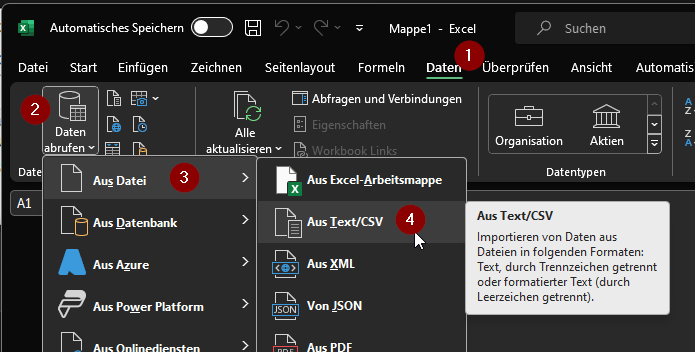 The final CSV file can be imported and converted in Excel.