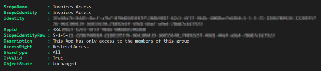 Connect-ExchangeOnline # Address of the mail-enabled security group $group = "Invoices-Access@M365x77044157.onmicrosoft.com" # Application (client) ID $AppId = "324b9727-62c5-9b1b-4f37-4005be8e6562" New-ApplicationAccessPolicy -AppId $AppId ` -PolicyScopeGroupId $group ` -AccessRight RestrictAccess ` -Description "This App has only access to the members of this group" We can now retest access to the “MeganB” mailbox. The output displays “Rejected” as the application access policy has now restricted access from the application to members of the mail-enabled distribution group only: