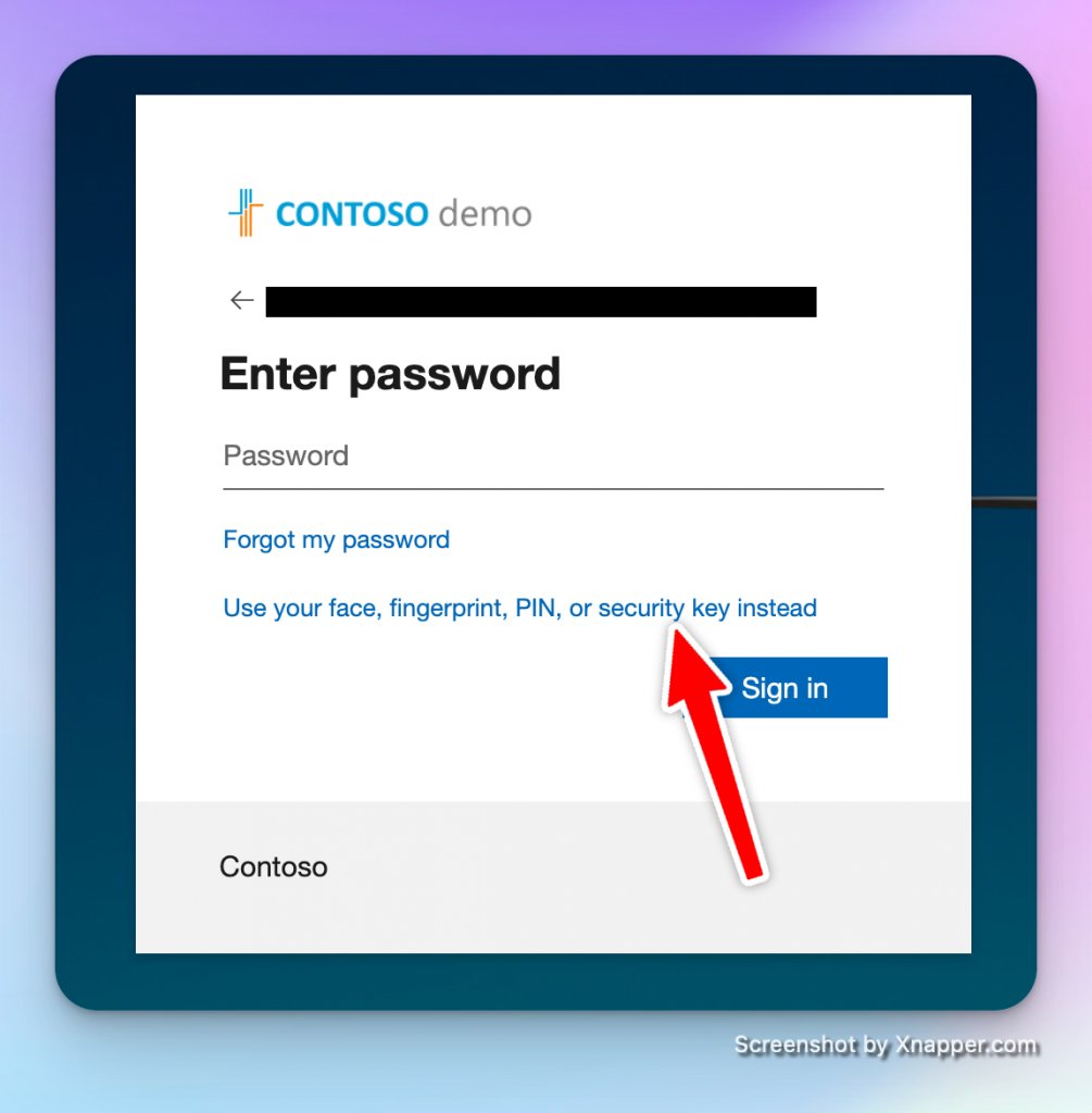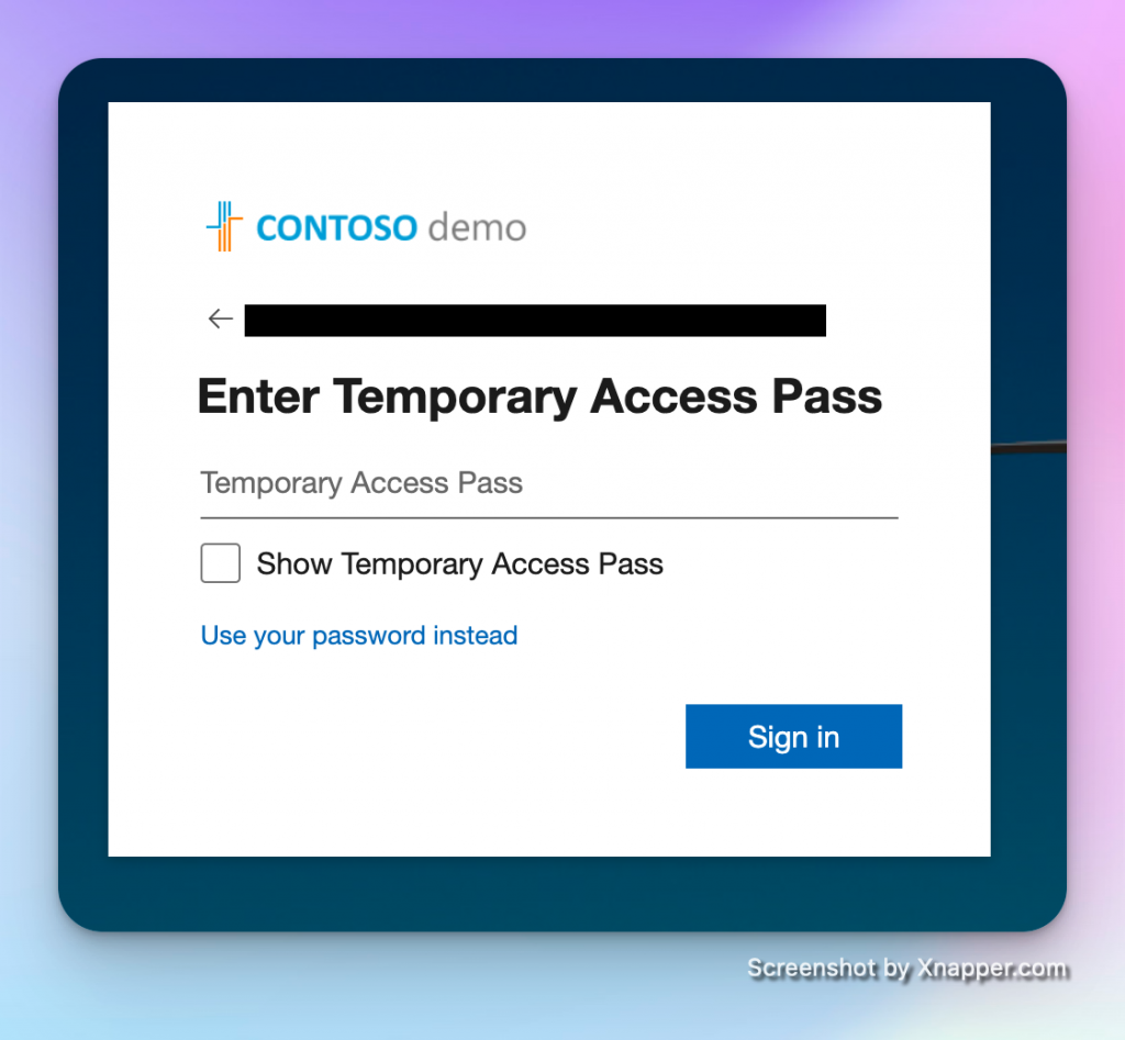 To register the FIDO2 key, please log in with your break glass account. After entering your username, you will be asked for the temporary access pass created: