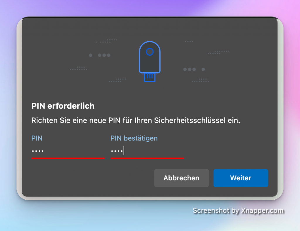Since this is the first time I am using this security key, I am forced to set a PIN for it: