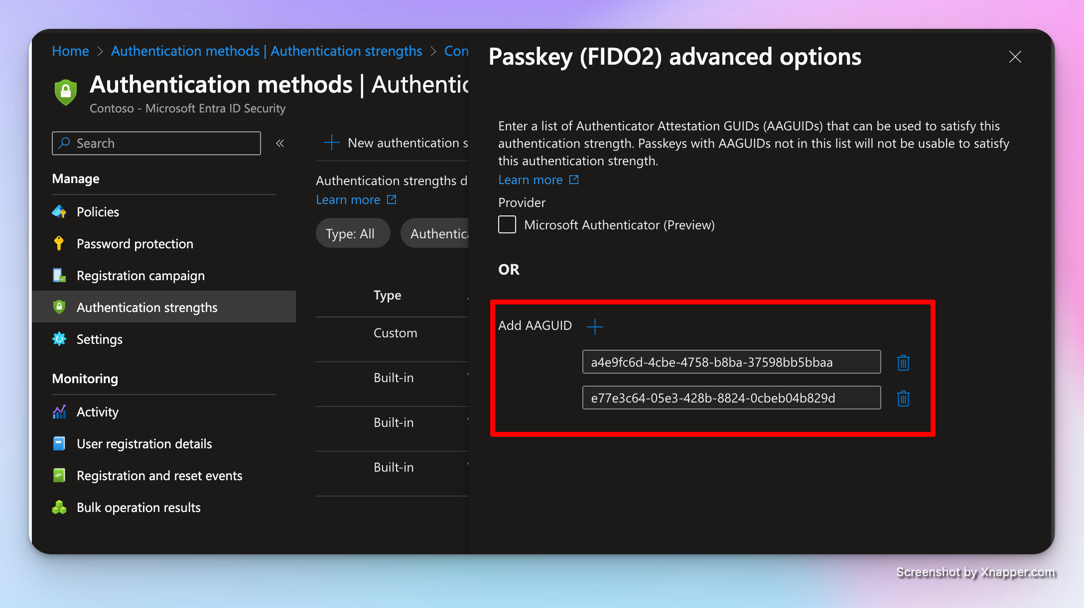 Here you can see the exact model and the AA Guid - you can use it here to adjust the authentication strength we configured a few steps earlier: