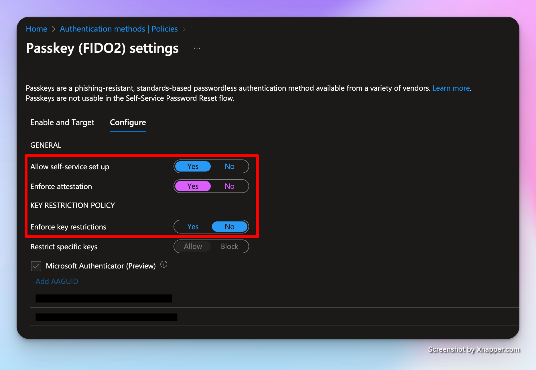 And then check the configuration and you can enable “enforce attestation”. This will verify that your FIDO2 key is genuine and comes from a legitimate vendor. If you are currently trying Passkey authentication, you will have to turn off this setting as Passkey currently do not support attestation: