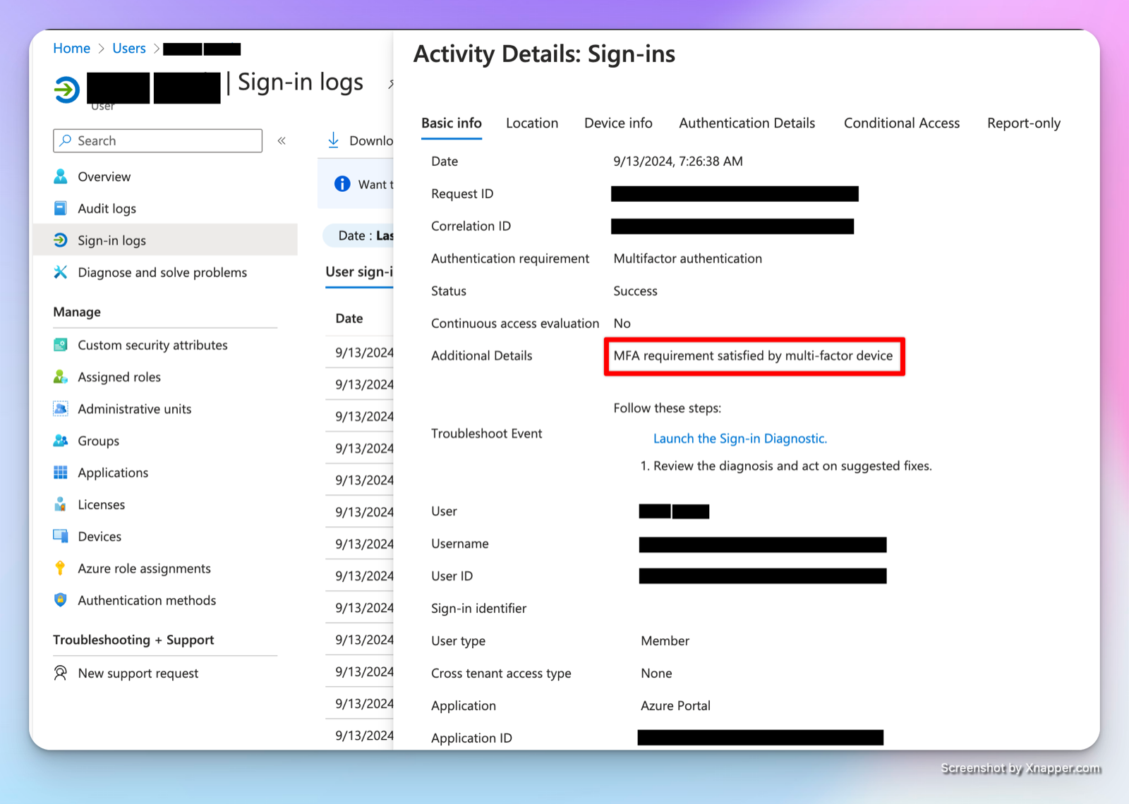 Then you are logged in! If you check the logs, you will see that the logon was successful and that the MFA requirement was met by a multi-factor device: