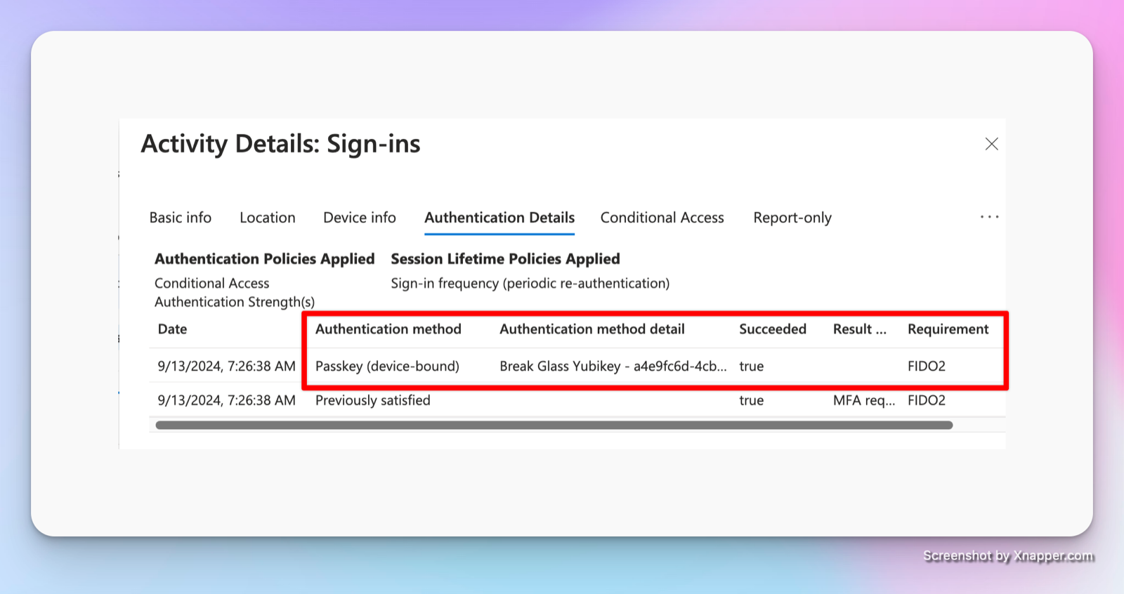 Under authentication details we can see that we used our “Break Glass Yubikey”: