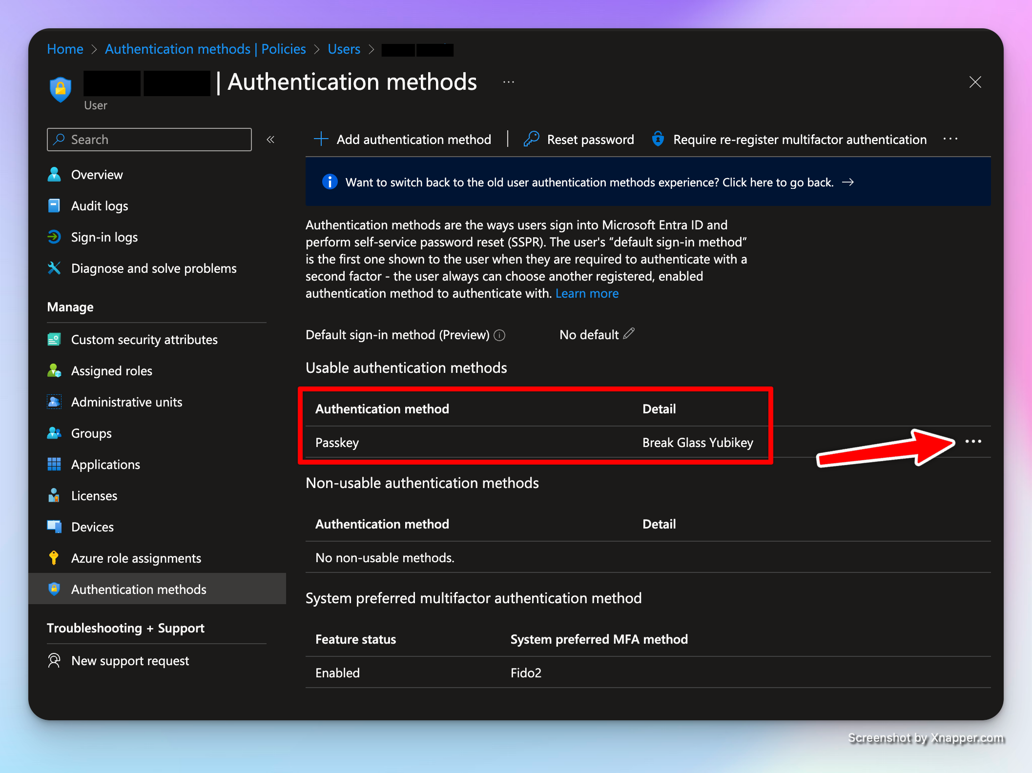 From an admin perspective, you can also see the registered security key - click on the three dots on the right to get more details:
