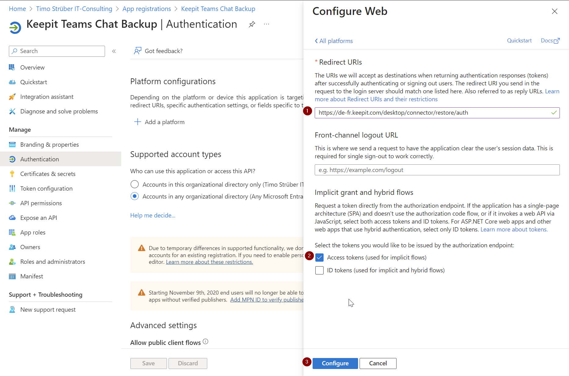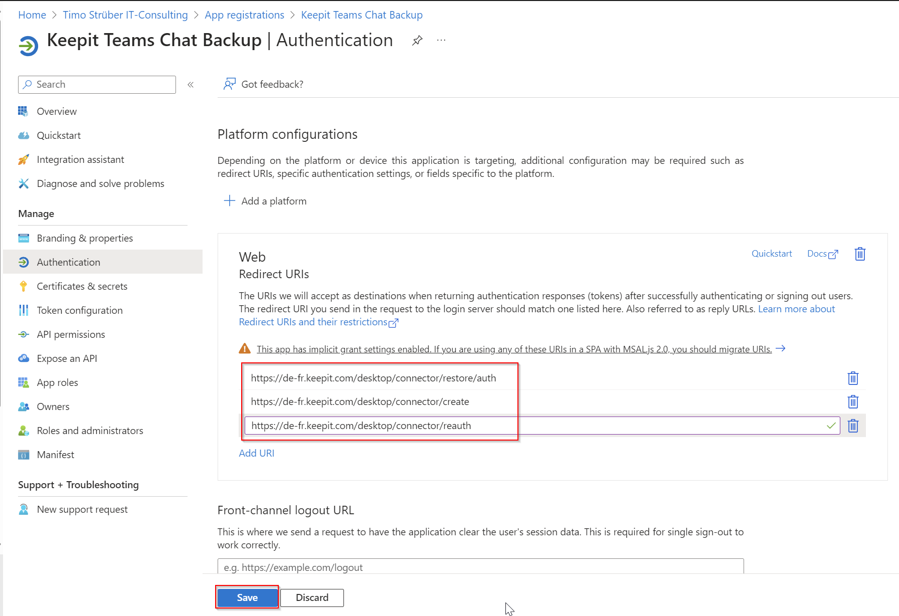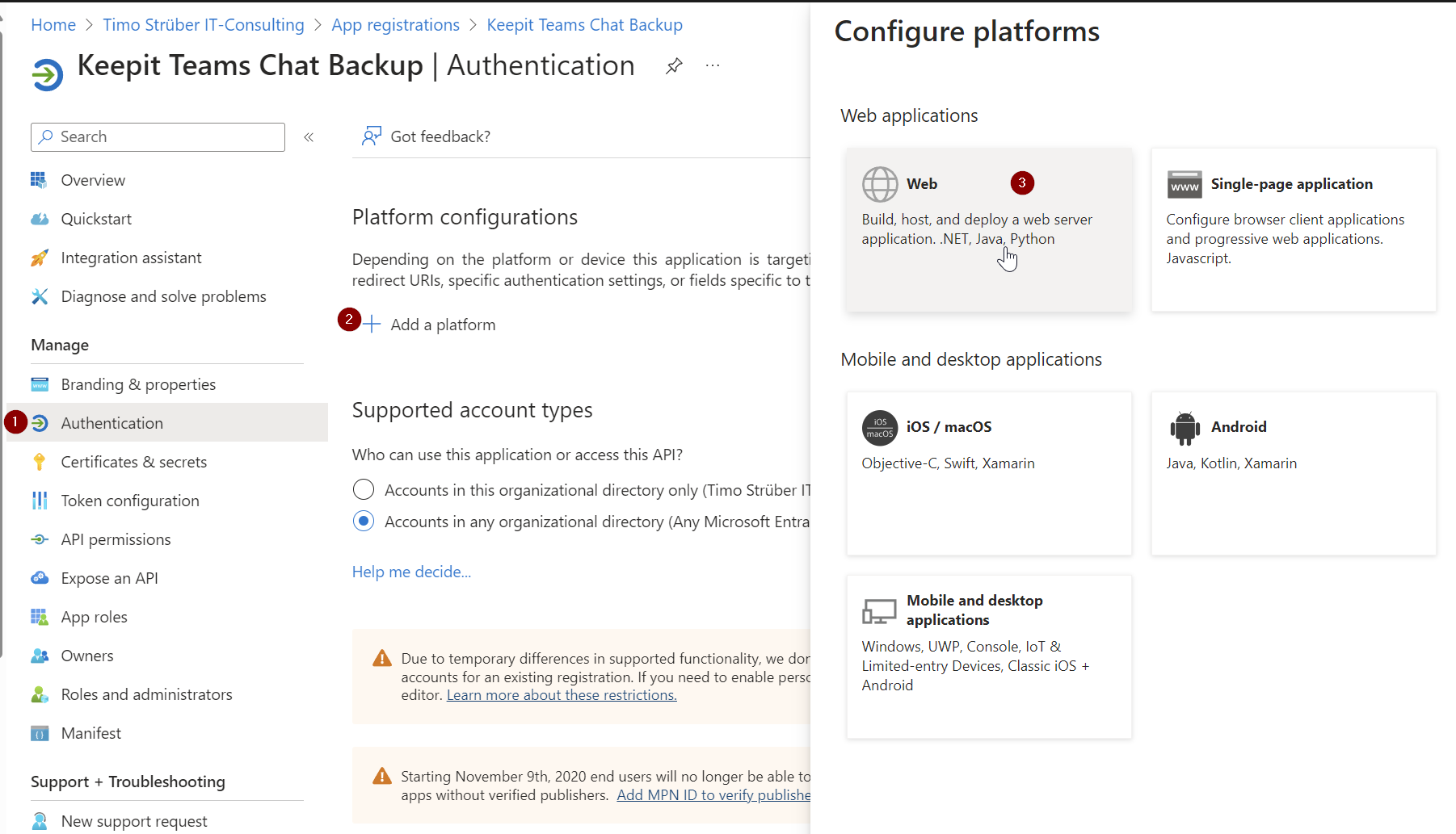 I also turned on “Teams Chats.” To start the backup, you’ll need to add the app registration.