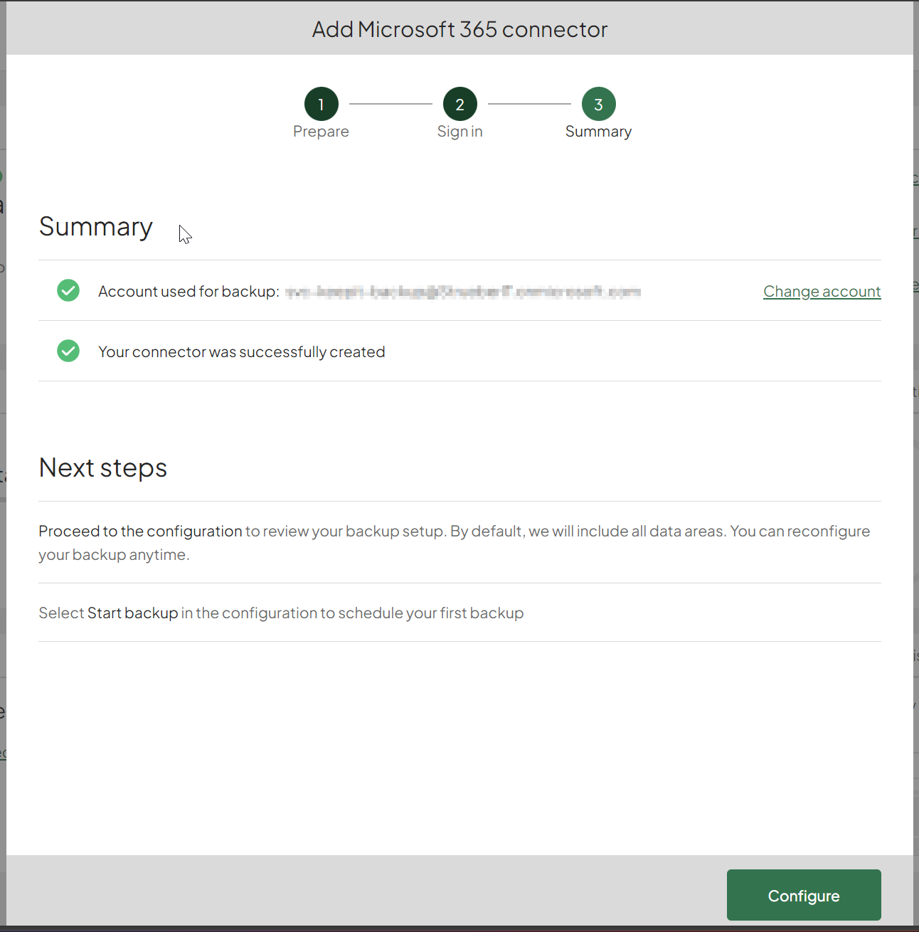 Now you can click next in the Keepit wizard: