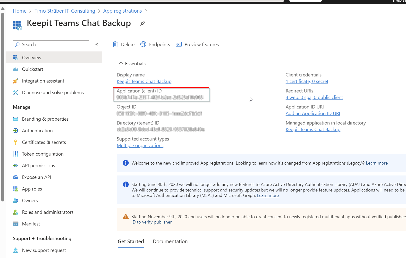 Obtain the App ID from the app registration in the Entra ID portal: