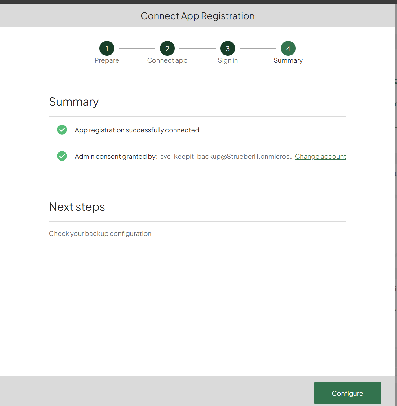 When everything is fine you can click on Configure: