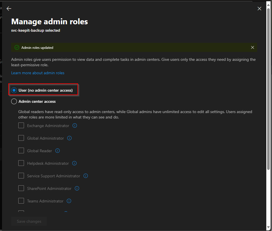 At last, I suggest getting rid of the global admin role from the backup service account since it’s not needed anymore.