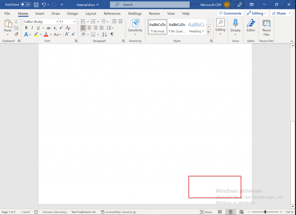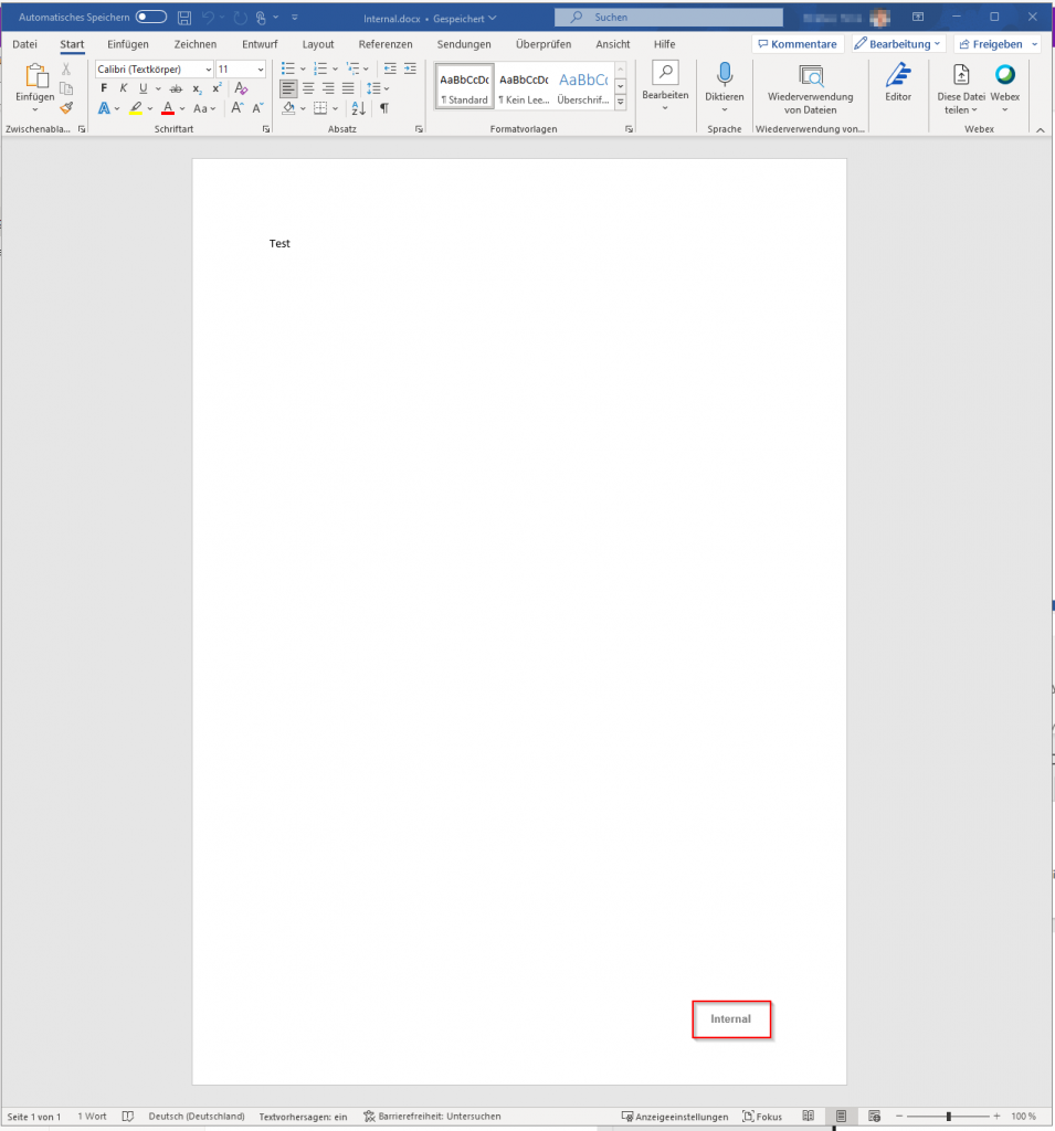To verify the result, I opened a Word document that still had the old Internal marking and then assigned a new sensitivity label such as General using the AIP Unified Labeling client.