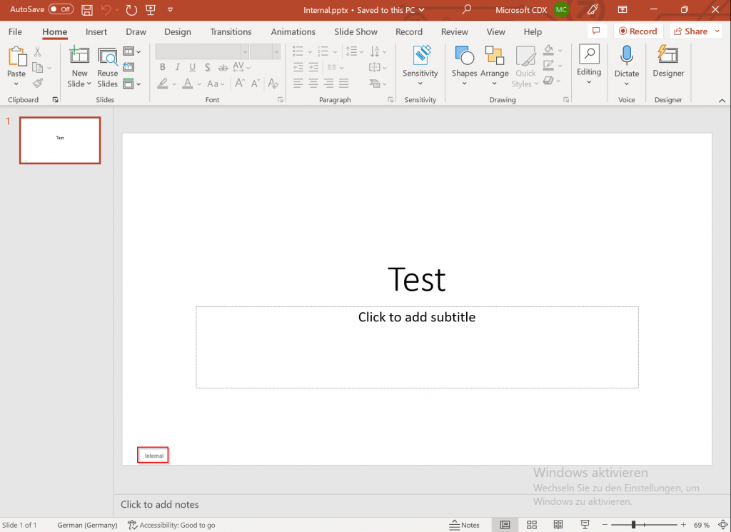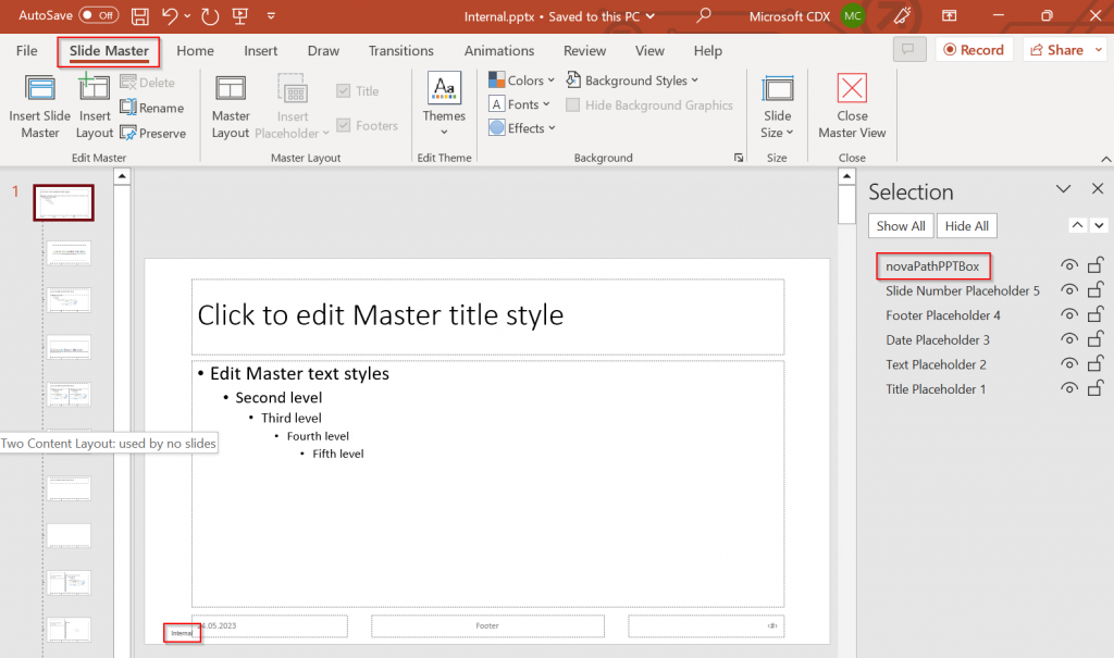 Connect-IPPSSession $labelpolicy = "Global sensitivity label policy" Set-LabelPolicy -Identity $labelpolicy -AdvancedSettings @{PowerPointRemoveAllShapesByShapeName="novaPathPPTBox"} Once configured, applying a new sensitivity label in PowerPoint removes the old legacy marking in the same way as in Word.