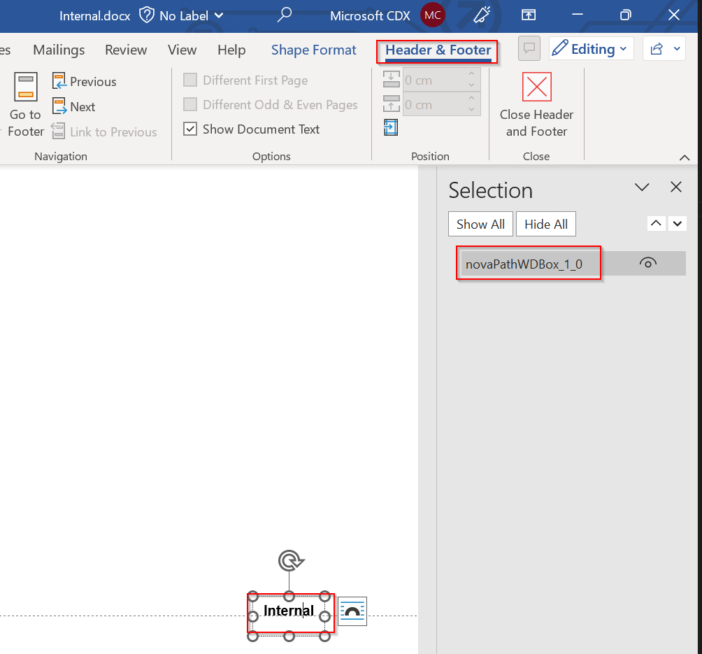 novaPathWDBox_1_0 After checking documents with different classification levels, I found that the same shape name was used consistently. That meant the same setting could be applied across all affected documents.