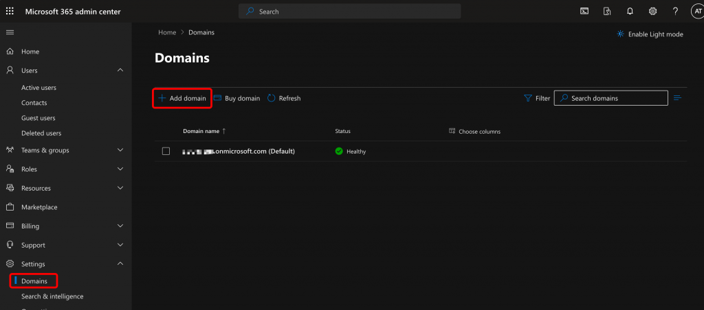Next, you’ll want to add your custom domain to your tenant.