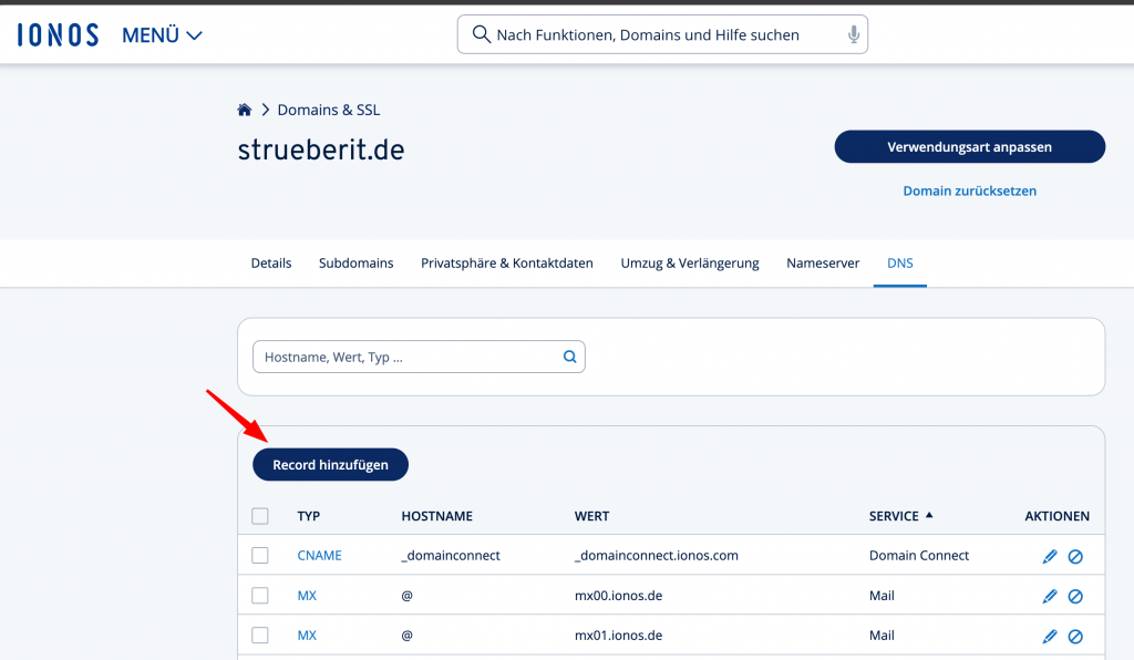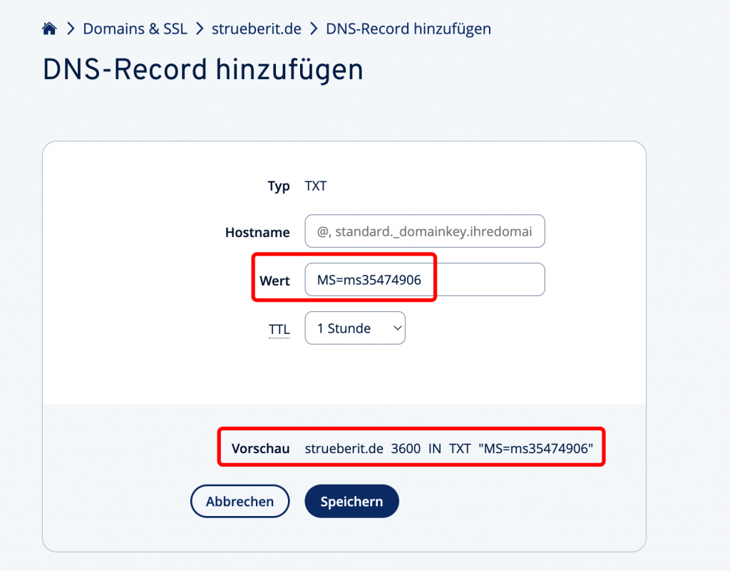 In my case I have a domain at IONOS - here you create a new TXT-Record: