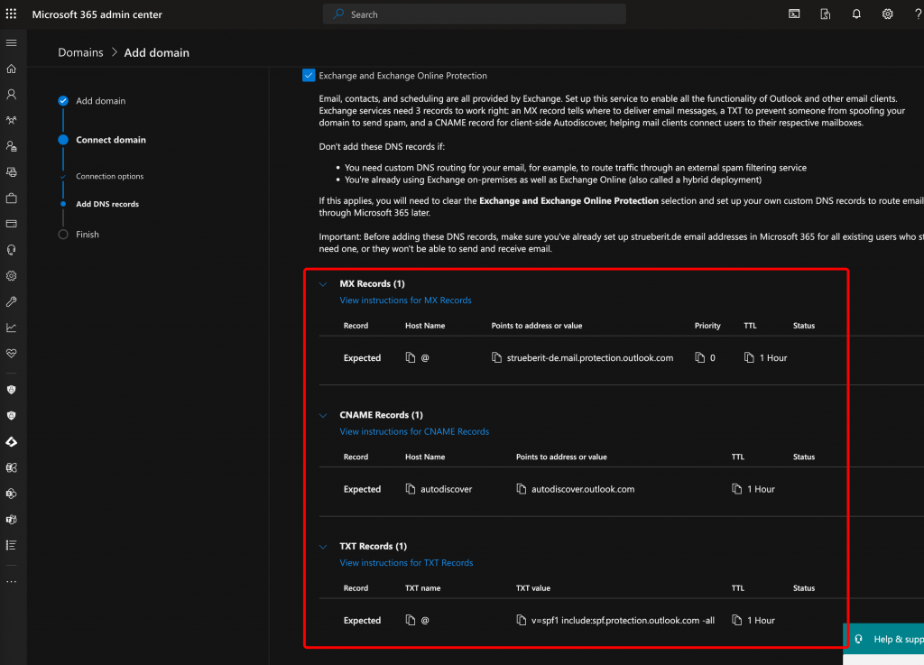 Once you’ve added all the records, just click on “Continue.” If everything looks good, you’ll get a confirmation: