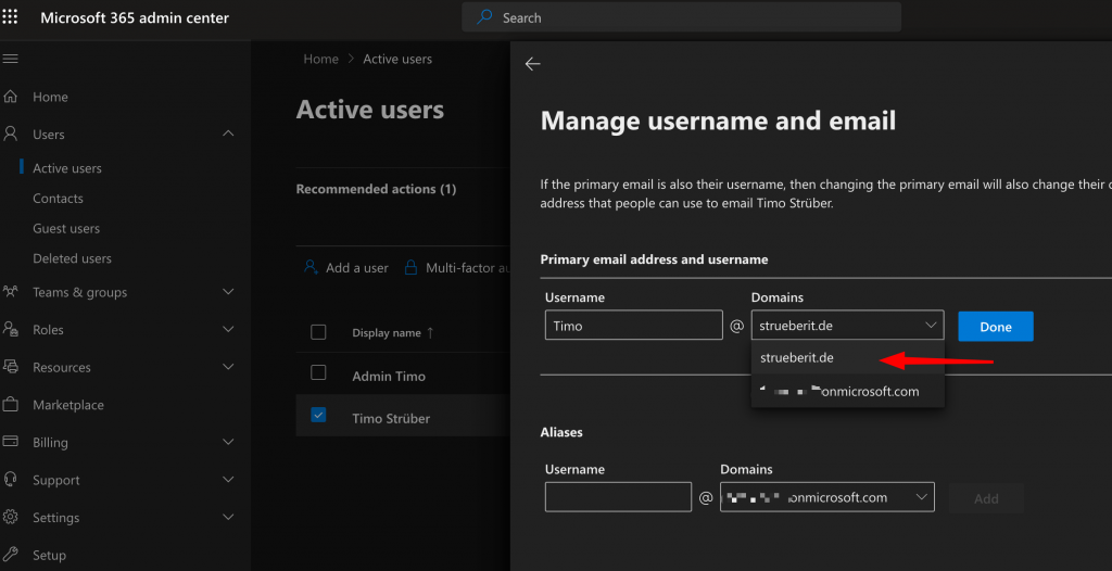 Change Users primary Domain