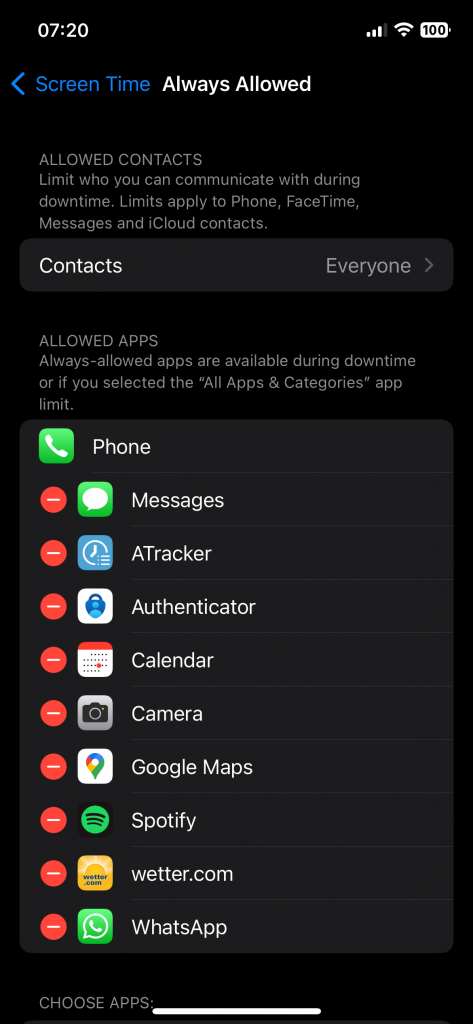 Define the apps that you want to allow at all times, then return to the Screen Time Settings.
