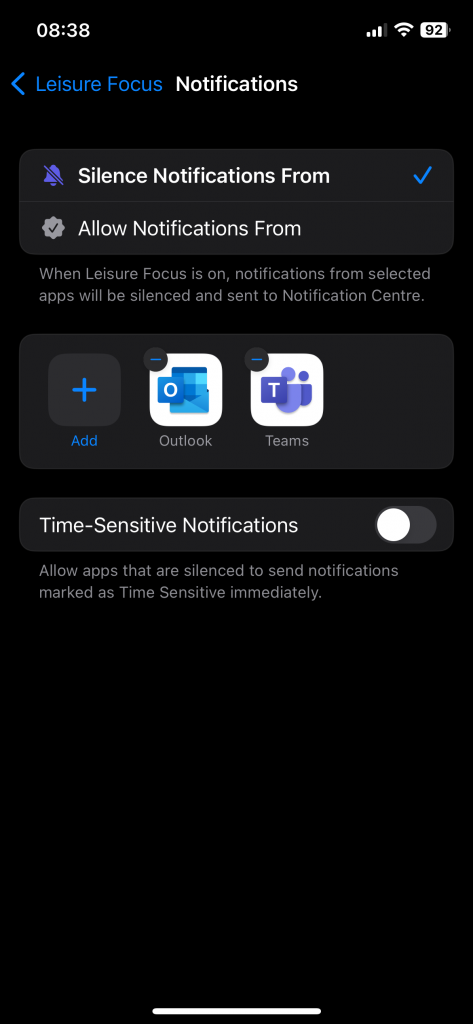 You can use this feature to define a downtime for your off-work time and only allow specific apps that you wish to use after work.