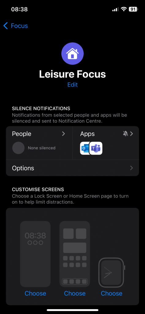 In this article, I provide tips for designing your iPhone homescreen to minimize distractions. Additionally, I discuss tools that can be used to limit notifications, such as the notification summary feature. I do not personally use every tool mentioned. One example I would like to mention because I find it helpful is the sleep time configuration in Apple Health. This feature reminds me to wind down before going to bed. I have attached my ‘sleep’ focus mode to the sleep time in Apple Health, which automatically turns off all notifications except those from my fiancé ;-) To limit my work-related notifications, I have configured ‘quiet time’ in Outlook and Teams.