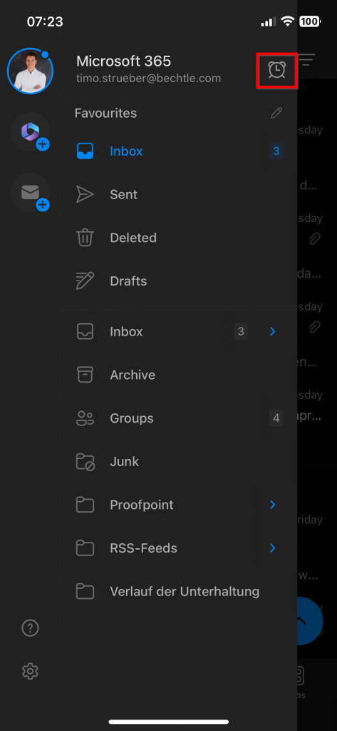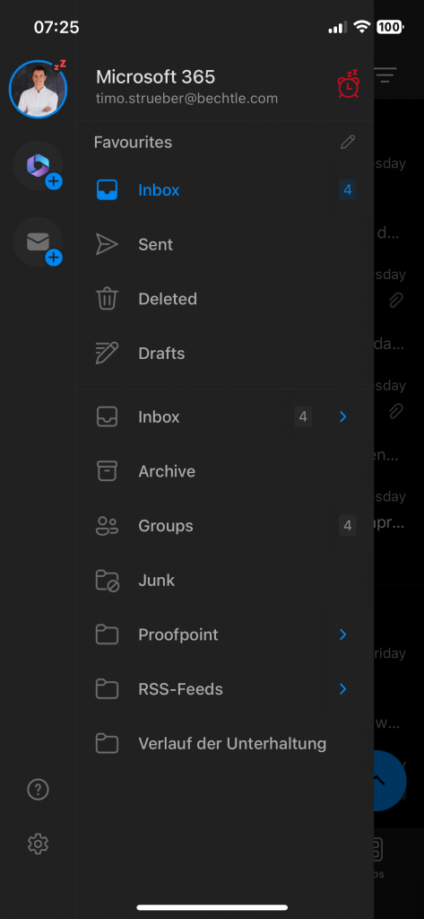 As you can see on the right side, my Outlook app currently has quiet time activated and notifications are suspended.