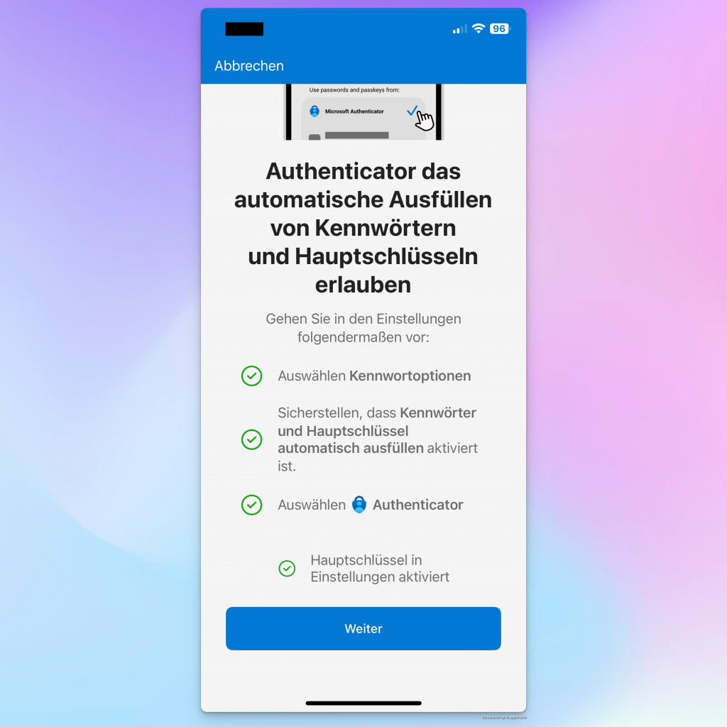 Since I’ve enabled MFA for this user, I get a pop-up asking me to authenticate the process by entering a number. This will happen on the device. Finally, the authenticator app asks me to set the app as my preferred app for passkeys (in German, “Hauptschlüssel”):