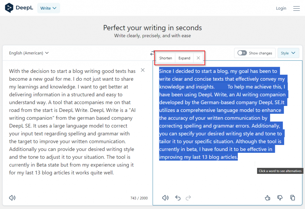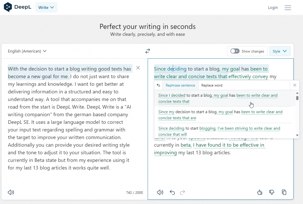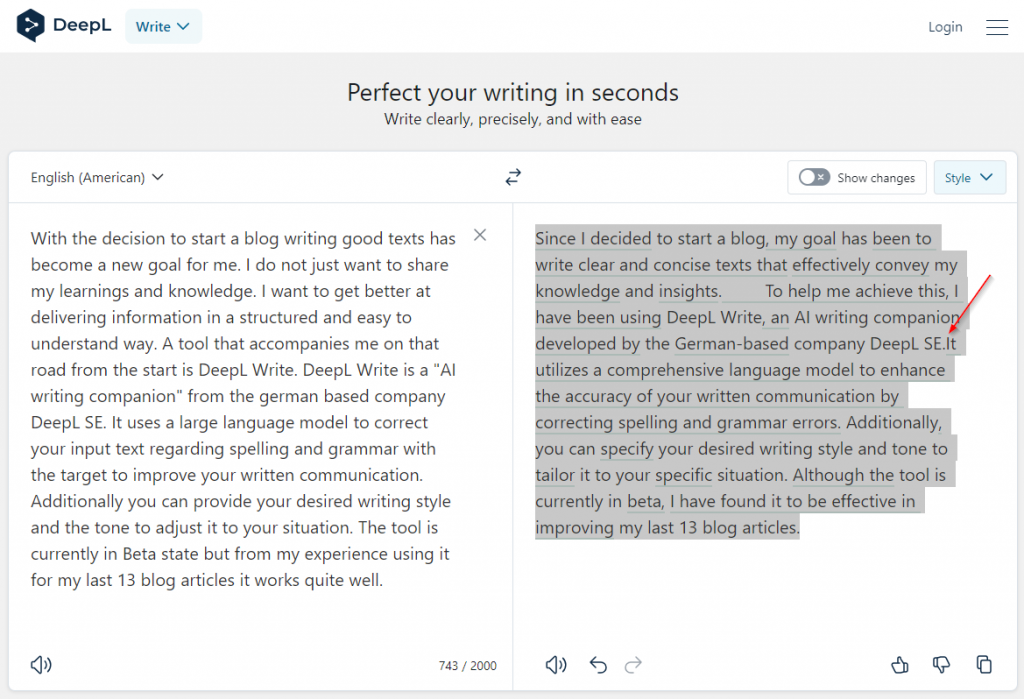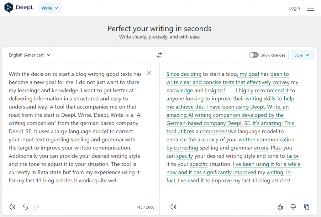 DeepL Write is an awesome tool that can help you create better texts and speed up your writing process. I enjoy writing in English, but my choice of words and grammar is not always perfect due to my native language being German. This tool helps me improve my writing in an easy and effective way.