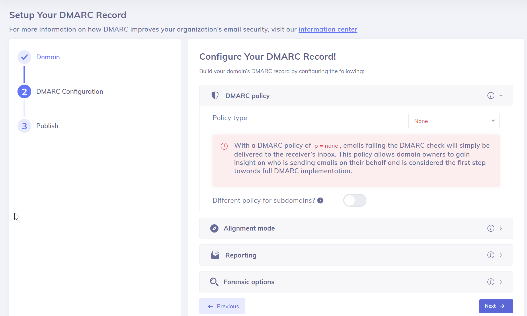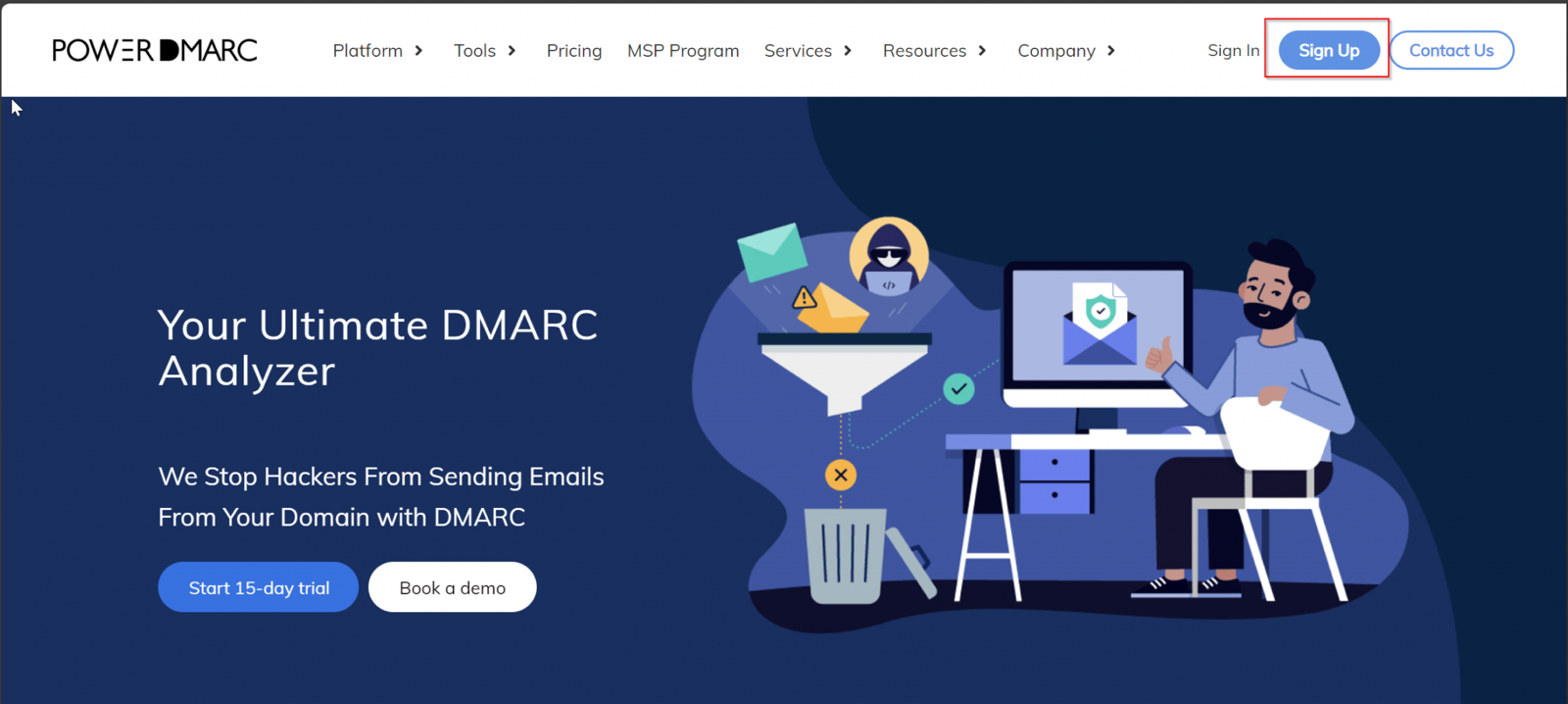 With DMARC set up, you can get a report from the receiver that’ll tell you if they got the email and if there were any issues with your SPF record or your email’s DKIM hash. To look at these reports, you need a service that can do it for you. One of those services is PowerDMARC. It also gives you extra tools like a SPF, DKIM & DMARC analyzer and a managed DMARC service.