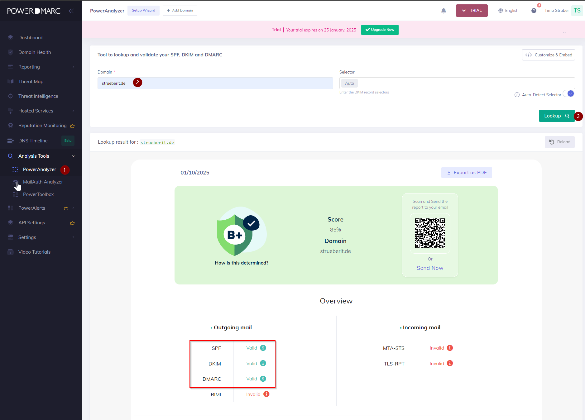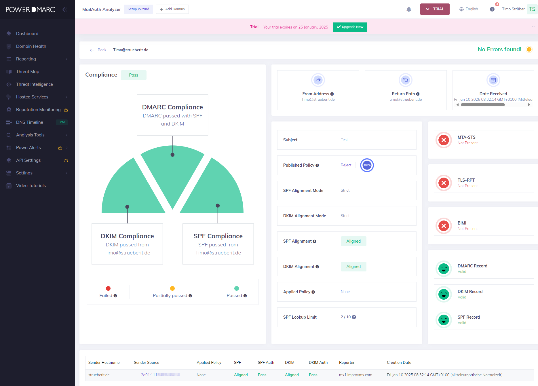 In this article, I showed you how to set up the PowerDMARC service, which lets you implement the basic email security services SPF, DKIM, and DMARC the right way. PowerDMARC also offers assistance with advanced services like TLS-RPT, MTA-STS, and BIMI. I’ll go into more detail about those technologies in future articles, so stay tuned!